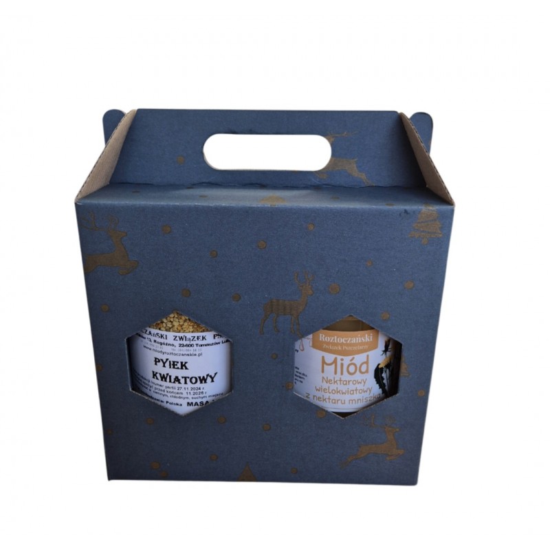 Pyłek kwiatowy 500 g + miód mniszkowy 1000 g w ozdobnym opakowaniu